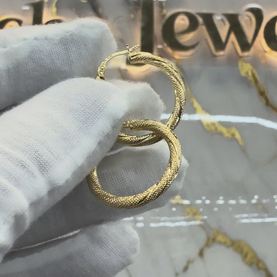 “Real 10k-----3mm x 21mm---.Elegant gold hoop earrings with a twisted textured design. Lightweight, comfortable, and perfect for everyday wear or special occasions. A timeless classic that adds subtle shine and sophistication to any look.”